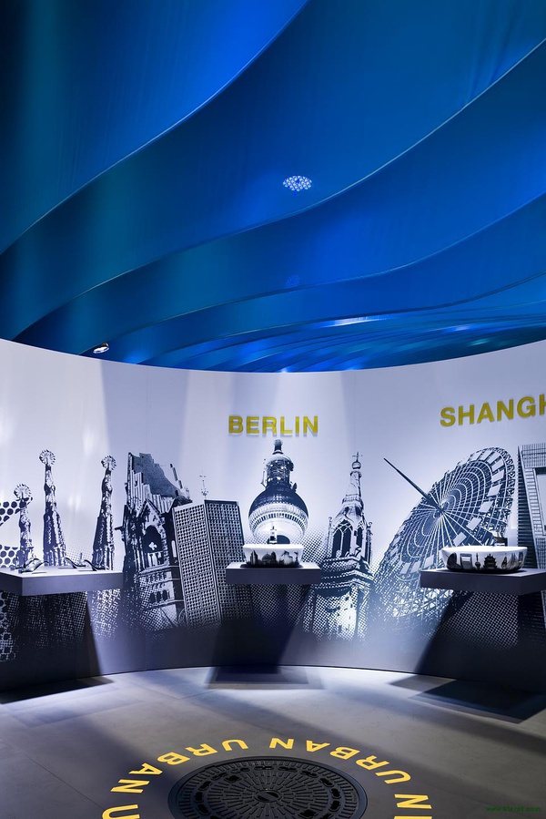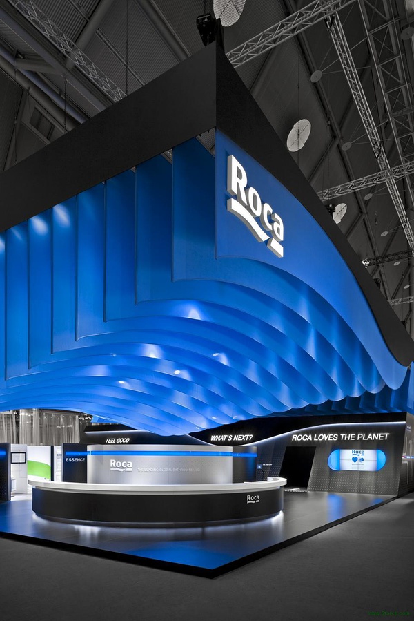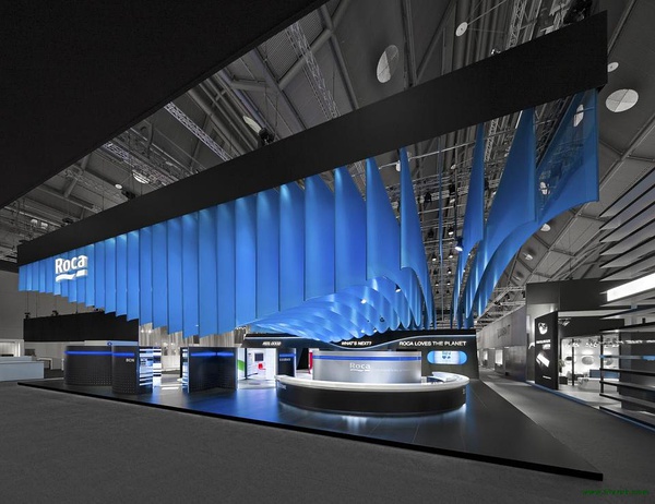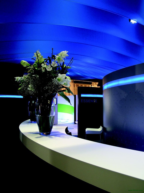 展會由著名設計公司dan pearlman Markenarchitektur GmbH 設計,位于德國法蘭克福。設計理念:藍色配以黑色,鮮明而深遠,冷靜而不失生氣勃勃。通過整體的概念設計展臺全方位展示樂家品牌。